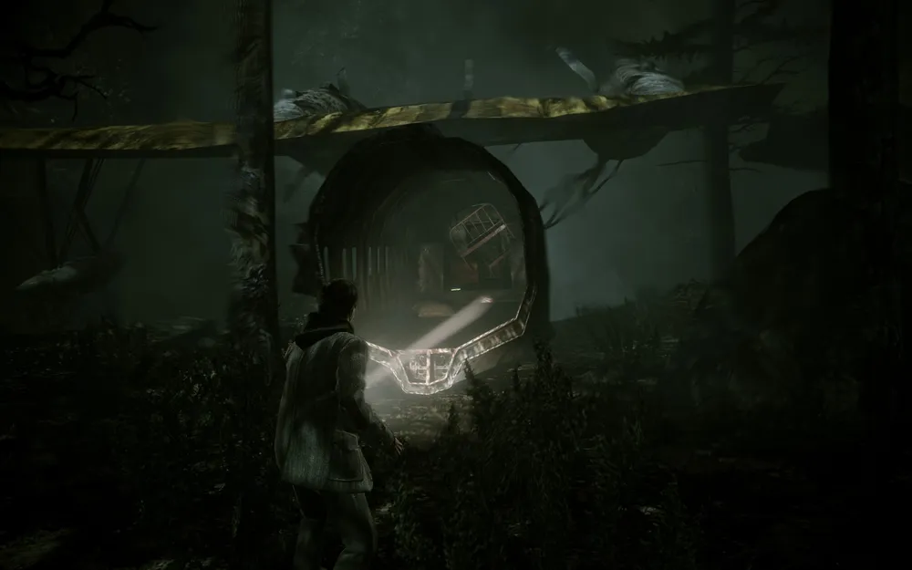 После того, как вы по поломанному экскаватору переберетесь через забор и вам потребуется открыть двери склада не пользуйтесь авто, уничтожайте одержимых и вещи заражённые тьмой фонарём или ракетами и дойдите до кнопки и на склад ножками.