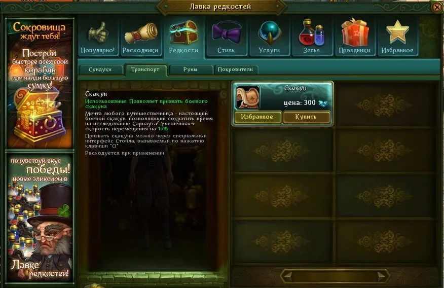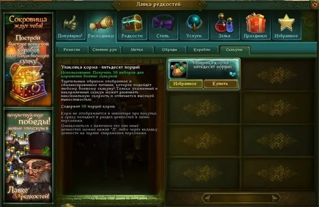 Персонажи 12 уровня и выше могут получить боевую лошадь, купив соответствующий товар в Лавке Редкостей. Там же можно и приобрести корм для своего питомца. Ведь только сытый и ухоженный скакун может развивать максимальную скорость и отличаться высокой выносливостью. За один раз можно купить 50 порций корма.