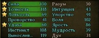 3) Зелье на +сила +инстинкт +удача +ловкость