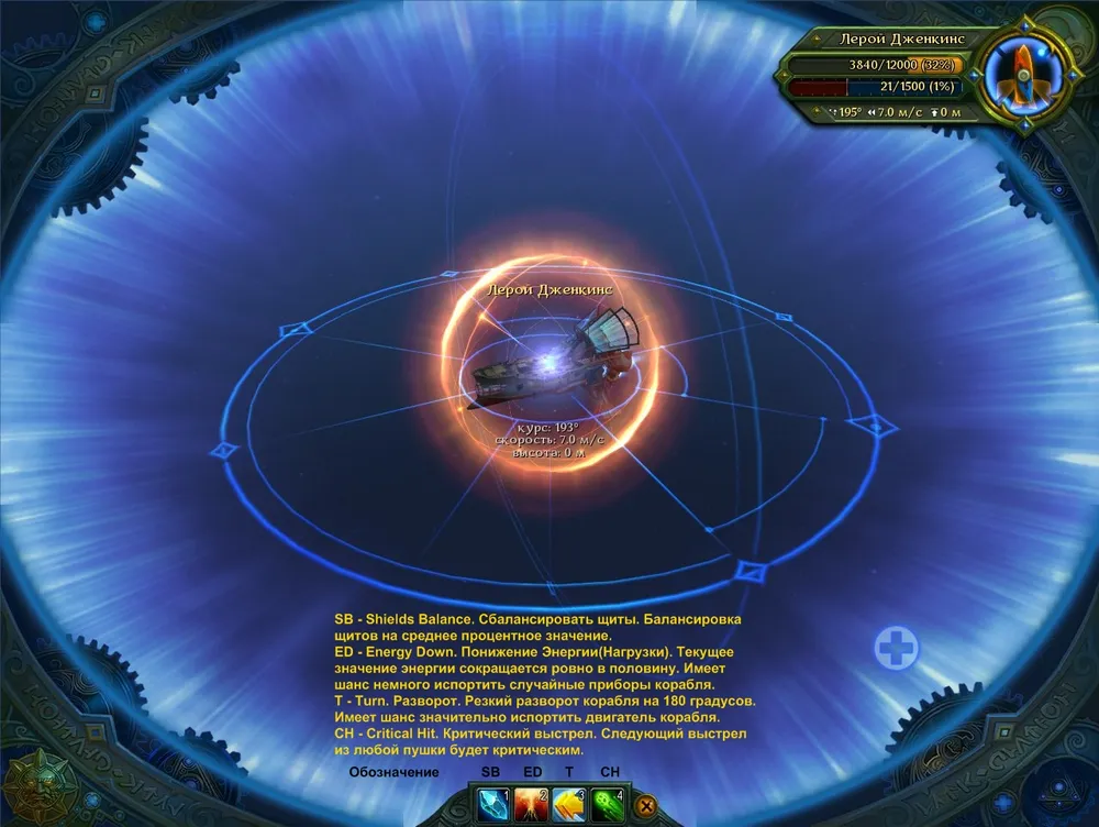 Рулевой - он же "Двигловой :)", как очень тонко шутят разработчики нивала. (На этом месте мы офигеть как смеемся). Нужен для маневрирования, задачи курса и разворота в боевых условиях.