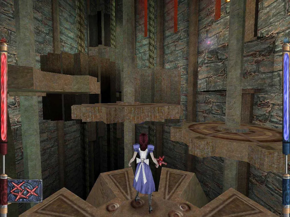 Восхваляя Alice и превознося МакГи на вершину девелоперского Олимпа, не стоит забывать и о редких недостатках, коими игра по недоразумению была наделена. Так, при всей видимой разнообразности процесса убиения монстриков, битвы с боссами выглядят совсем не впечатляюще. Каждая подобная схватка разворачивается на небольшом импровизированном ринге, где мы сходимся с врагом в беспощадной битве. Изничтожение ключевых фигур (будь то Шляпник или Тряляля с Трулялей) проходит по однообразной схеме с минимумом косметическх изменений. Увы, но этот элемент сильно не увлекает. Но это - единственный серьезный упрек в сторону игры. Остальное зависит от вкуса пользователя. Разделение на action-часть и попрыгушки по ландшафту проводится достаточно четко. То есть, при выполнении акробатических экзерсисов на специально заточенных под это уровнях, уменьшается риск получить пинка от разбушевавшейся зверюги, и наоборот - занимаясь массовыми расстрелами (и зарезами), оптимальный путь не будет испещрен ухабами. Горячих ощущений и без этого хватает.