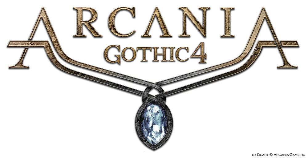 Компанией JoWood ранее был опубликован официальный логотип Аркании. Но, есть одно "но". Многих поклонников Готики и тех, кто ждет Арканию, этот логотип угнетал или же раздражал. А раздражал тем, что два слова не сочетаются между собой - все потому, что выполнены они в разном стиле. Слово "ArcaniA" сделано сызнова разрабами.. а вот "Gothic4" - взято ими у Пираний. Я же пришел к тому выводу, что лучше сделать логотип в одном стиле. Немного поковырявшись с этим проектом, я закончил его и могу представить свое творение на всеобщее обозрение: