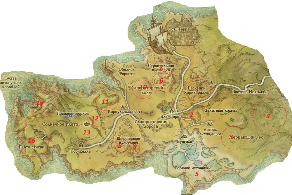 Точка 14: Шаман Тадес - мини босс время респа 3 минуты. С него выпадает предмет который даёт скрытый отмечаемый квест, за который в качестве награды вы получаете слезу Нуи. Выполняется только один раз. В будущем после отмены слез, вероятно будут давать дельфийские звезды. Босс для достаточно трудный для фарма в соло, лучше прийти с другом тем более что итем падает всем сразу.
