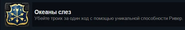 Особенность Ривер, как известно из описания, позволяет ей нанести 1 урона до боя. В случае с убийством из-за этого выстрела, Ривер тратит 1 ОД, но при этом остаётся на месте. Следовательно, чтобы выбить ачивку, нам нужно убить/добить троих существ именно этим выстрелом. Сложность заключается в том, чтобы создать выгодные для себя условия: либо изначально быть окружённой тремя существами (тогда нам, скорее всего, понадобятся наносящие урон карты заклинаний/хитрости), либо в принципе иметь троих существ с 1 здоровья, до которых можно добраться за один ход (тут нам пригодятся любые дополнительные ОД и "Телепортация" или "Изгнание"). В общем, молимся Великим Богам Рандома.