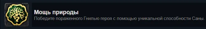 Сражаться с поражённым гнилью героем Сане особого труда не доставит, особенно если до боя усилить себя или ослабить противника с помощью карт заклинаний, благо, духа у Саны предостаточно. Самое сложное в этом достижении - чтобы хоть один герой пошёл по пути гнили и успел ею поразиться. Задачу может упростить игра с ботами и выдача каждому из них амулета "вредитель" (+2 к гнили).
