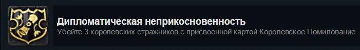 Собственно, нам понадобится карта хитрости "Передышка" и по крайней мере 1 престижа чтобы её использовать. Если на нас никто не вешает "награду за голову", нужно просто напасть на Королевского стражника, войти во дворцовые сады или же просто как-нибудь нарушить закон, чтобы при этом не умереть - ачивка наша.