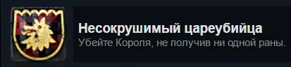 В получении достижения нам в принципе может помочь присвоенный "Оруженосец". Но тогда нужно быть абсолютно уверенным, что Король нанесёт нам достаточно урона, чтобы убить нас, что заставит оруженосца пожертвовать собой, а нам в итоге вреда не причинит.
