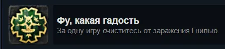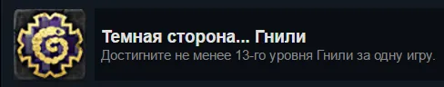 Достижение стоит делать тогда, когда мы уже хоть раз побеждали с помощью гнили, чтобы открыть нужный амулет. Задачка ясна - набрать много-много гнили. Собственно, сначала нам лучше поразиться гнилью (желательно не выполнять до этого времени задания) с помощью Гадов или же если нам везёт на карты. Затем - брать задания, дающие +2 к гнили и гонять Гадов по всей карте.