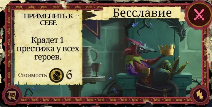 Есть в "Armello" и ряд карт, требующих очков престижа в качестве оплаты. Есть при этом и некоторый "несгораемый" престиж. Например, имея на старте игры амулет "фаворит", вы можете использовать такие карты, считай, бесплатно, если не успели набрать ещё очков престижа каким-нибудь другим способом.