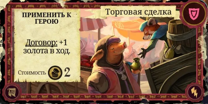 Рекомендации к применению: Если у вас есть немножко золота - обязательно используйте. Лучше всего после хода того, с кем собрались заключать сделку, чтобы быть чуточку впереди по получаемому золоту. Карту также можно эффективно сжечь.