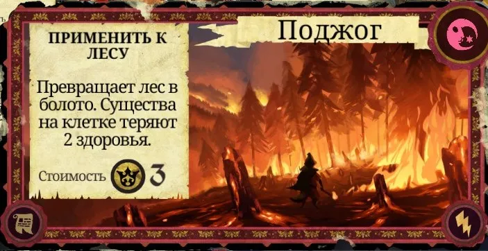 Рекомендации к применению: Если у вас есть золото - обязательно используйте. Отличная защита поселений от Гадов и "прогнивших" героев. Карту также можно эффективно сжечь.