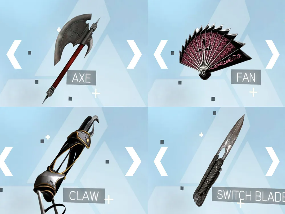 У каждого из персонажей есть собственный, техника убийств и запас оружия. К примеру: Куртизанка со спины убьет врага острым веером, в то время как палач срубит кому-то голову топором.