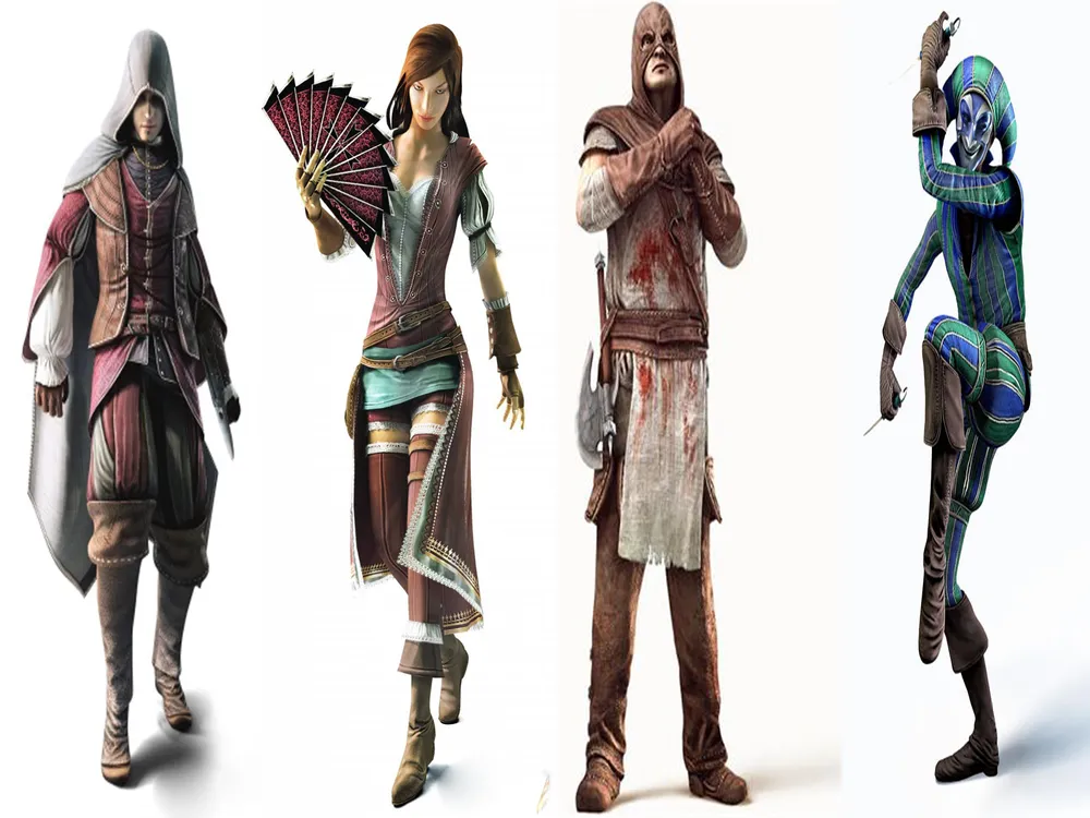 Как я уже говорил, то в мультиплеерной части Assassin's Creed: Brotherhood нам предложат поиграть за нескольких персонажей. Эти персонажи делятся на две фракции: организация тамплиеров и орден ассасинов. У каждого персонажа есть свой класс. Вот все классы: Куртизанка, Охотник, Парикмахер, Палач, Дворянин, Священник, Доктор, Торговец Кузнец, Солдат и как дополнительный контент — Арлекин. После релиза возможны появления новых классов.