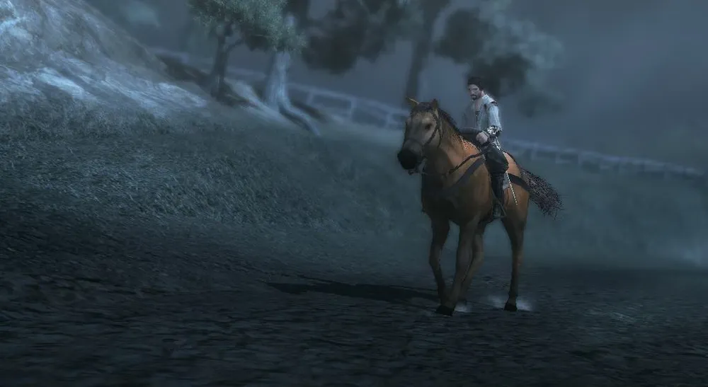 Около стойбища при выезде из Монтериджони конюх нам говорит, что конь Марио сбежал, а он стар, чтобы его поймать, так что Эцио помогает. Не пытайтесь догнать коня. Можете немного пробежать за ним, тогда конь возвращается. Когда будет пробегать мимо вас, жмите Shift, чтобы оседлать животное и возвращайтесь к конюху.