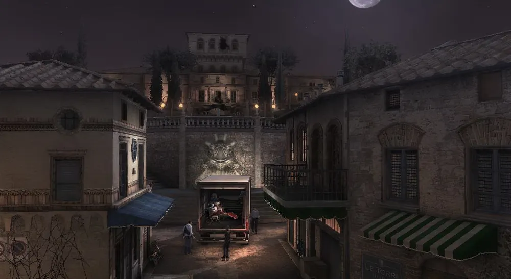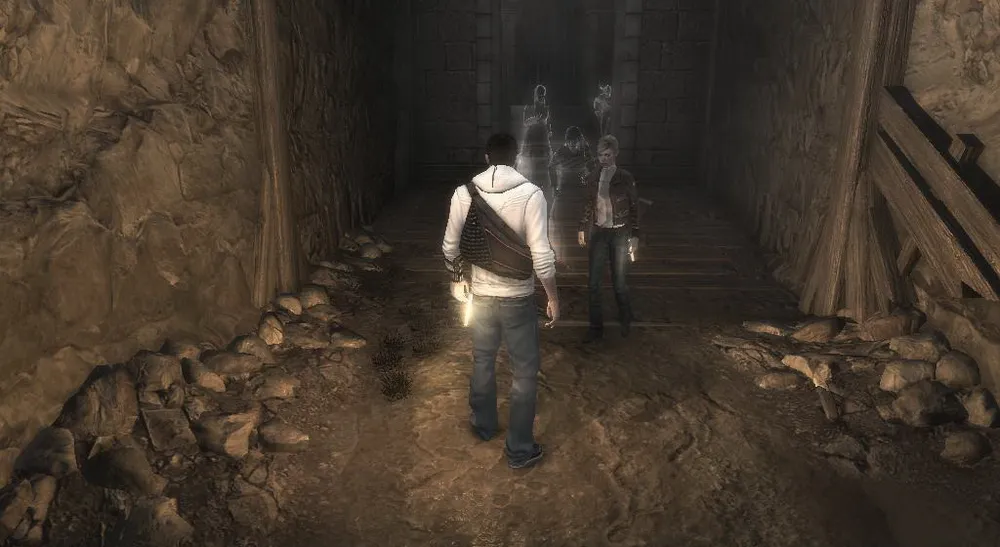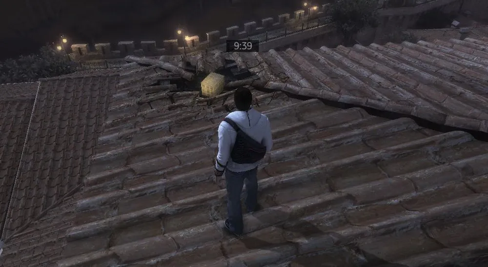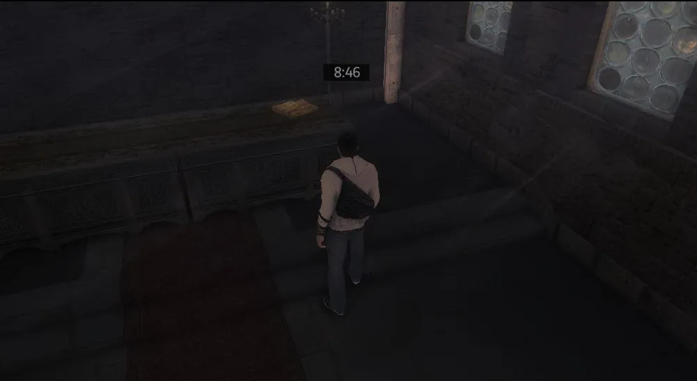 Благодаря эффекту "просачивания" Дез видит призрак Эцио. Бегите за ним, и он приведет вас к входу. Майлз со стены виллы совершает первый в своей жизни прыжок веры в сено, пока Люси трусливо спускается по лестнице. Внизу обнаружился вход в подземелье. Ребята включают фонарики и бегут по коридору.