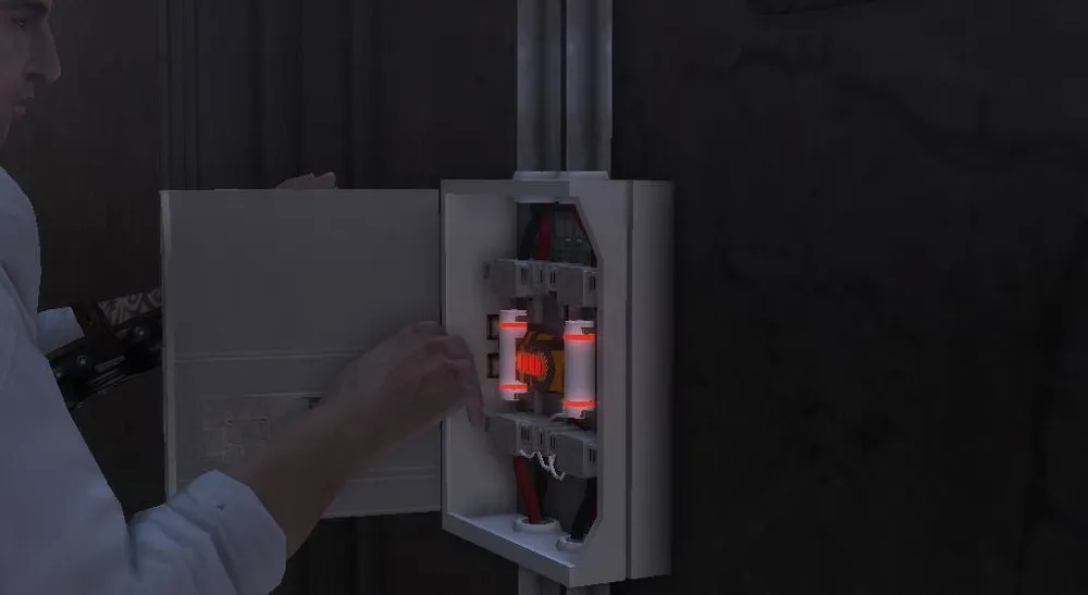 Первая проблема, с которой столкнулись ребята – отсутствие электричества на вилле. У местной линии мощность маленькая. Так что Ребекка поручает нам задание - найти 4 распределителя, чтобы вставить какие-то цилиндрические штуки.