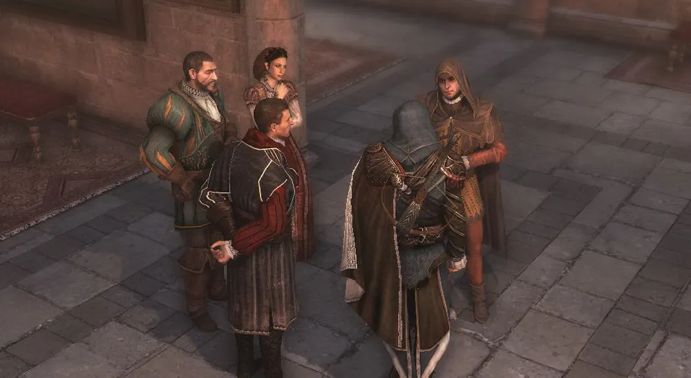 Встречаем Николо на площади, любуемся его новым бордовым одеянием. Оказывается, никто не знает, что Эцио остался жив. Идем за Макиавелли. Николо советует купить снаряжение, делится с нами некоторой суммой, и в ближайшей кузнице мы обзаводимся наплечниками и стилетом. Эцио сообщает, что не едет во Флоренцию, потому что в стране не будет мира, пока они не восстанут против Борджиа и их слуг-тамплиеров. Эцио узнает, что Чезаре собирается покорить всю Италию и у него в союзниках сам король Франции. Его люди контролируют Рим и нельзя даже взять лошадь из конюшни – они подчинили себе город. Идем к башне, чтобы убить капитана, дабы избавить данную территорию от влияния Борджиа.