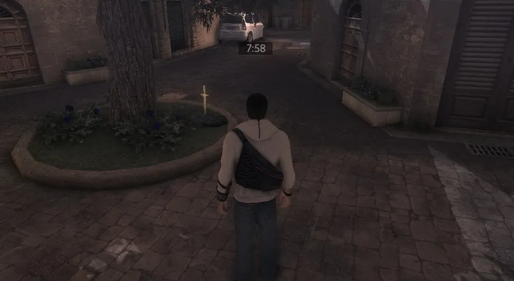 Бежим за Марио, натыкаемся на группу монахов и чихаем на них, расталкивая локтями по пути (Shift). Доходим до выхода со двора, и Марио предупреждает нас о необходимости готовиться к бою.