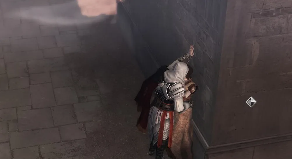 Жена хочет отомстить мужу самоубийством за то, что он бросил ее и убивает людей, но Эцио берет это дело на себя. Ланц сидит на одной из крыш локации. Он будет пытаться сбежать, и некоторое время это ему будет удаваться. Можно бежать за ним не по крышам, а по земле – так будет быстрее. И как только он будет спускаться или пытаться сбежать по земле – сбиваем с ног.