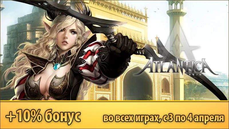 Не пропустите мега-бафф от Инновы! 3 апреля получите +10% бонус на пополнение счета в Фогейме. Акция действительно с 00:00 3 апреля до 00:00 4 апреля. Участвуйте и наслаждайтесь игрой в Atlantica Online!