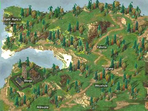 Сам квест Дорна представляет собой пробег по нескольким территориям и выпил его бывших сотоварищей - некромантки Крилл и пафосного педа Симмеона, который, будучи самым умным в группе, сам стал блэкгардом (не, а что, демона же надо только попросить, и вот она - суперсила), вызвал двух чертей и напал на нас севернее моста во Врата. Конец предсказуем. По всем локациям можно пробежаться за полчасика, правда, мост во Врата будет доступен ближе к середине игры. Плюс-минус минут 10 на бои. Вот и все 4 часа.
