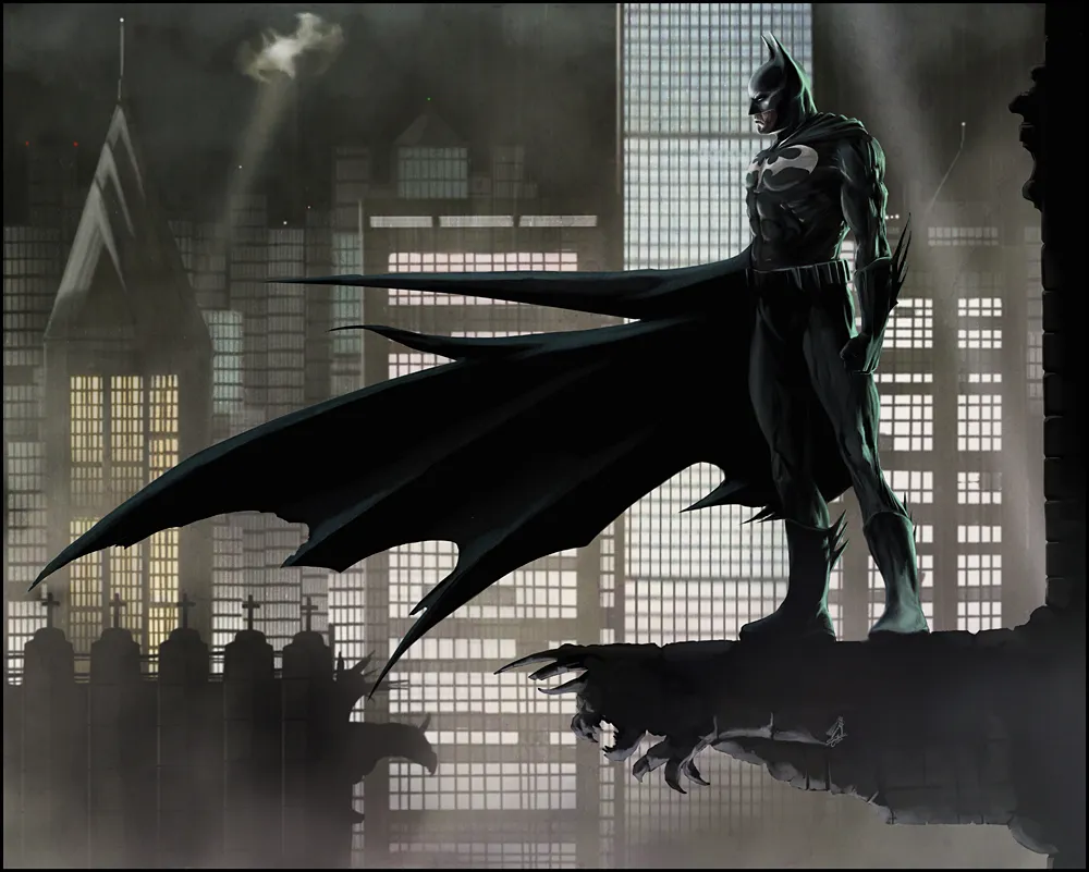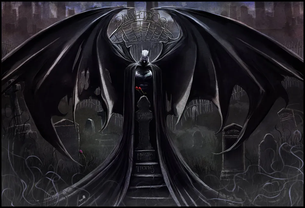 Комиксы: Происхождение Бэтмена в чём-то похоже на одну из десяти заповедей. Оно вырезано в камне и никогда не меняется. После просмотра «The Mark of Zorro» с родителями, юный Брюс видит, как выросший из теней Джо Чилл убивает Томаса и Марту Уэйн. Несколько наивно поклявшись полностью искоренить преступность в Готэме, выросший Брюс жаждет отомстить за родителей. Вдохновлённый летучей мышью, пробравшейся в особняк Уэйнов, Брюс решает использовать образ ночного охотника, чтобы вселять ужас в сердца преступников. Остальное, как говорится, вошло в историю.
