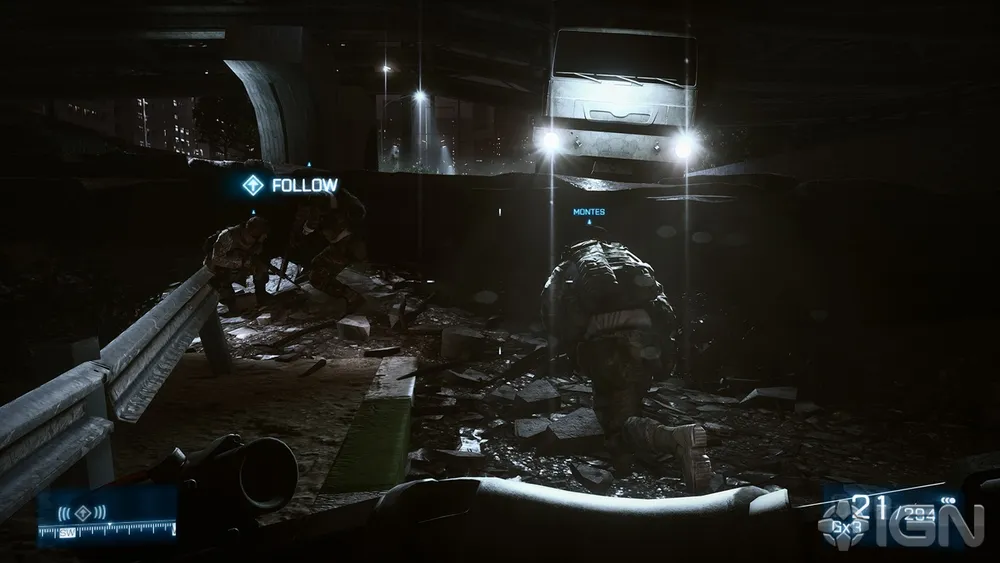 Кампания Battlefield 3 иногда выстреливает некоторыми запоминающимися моментами (особенно в визуальном плане), однако в целом оно стала банальным разочарованием. Сингл выглядит так, словно в мультиплеер вставили множество пробок, выкинув свободу выбора через неразбиваемое окно. Есть лишь несколько зданий, которые дадут разрушить, мизерное число машин, а QTE появляются практически в каждом уровне при встрече с врагами. В то время, как вы можете приземлить свой вертолет на голову другому солдату, выпрыгнув предварительно и открыв парашют (чем вы спокойно можете заняться в мультиплеере), кампания заставит вас вовремя нажимать на «Пробел», чтобы не получить очередной удар кулаком в лицо. Это две абсолютно разные игры.