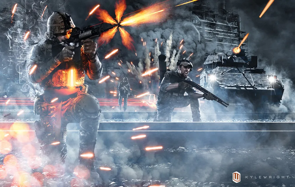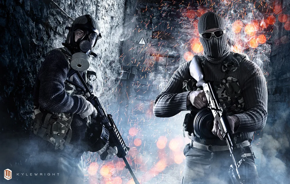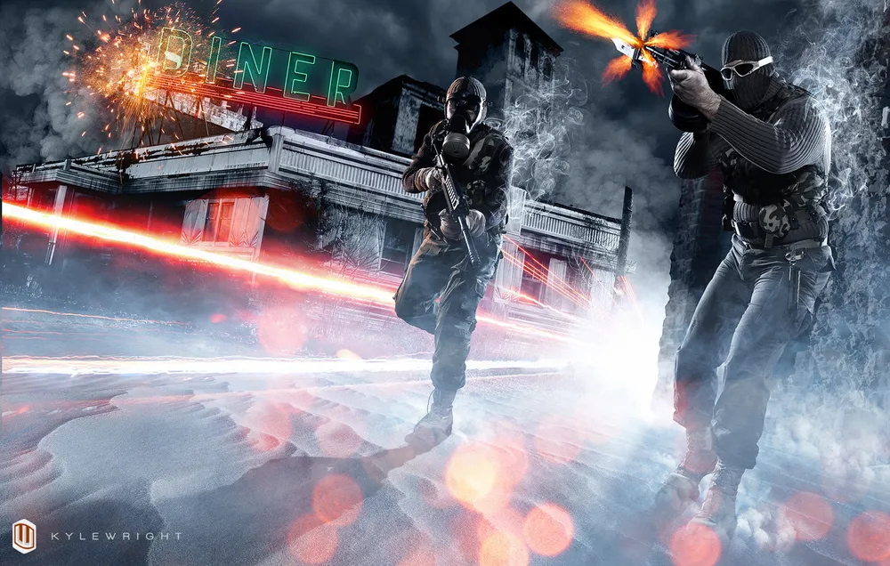 Фанаты Battlefield 3 и виртуоз фото-арта Кайл Райт из Американского штата Оклахома, сделали не просто удивительный косплей по Battlefield 3, а целый набор "боевых зарисовок" на тему игры. Сама работа над косплеем и съемкой фотографиями была относительно недолгой, но требовала узнаваемого дизайна. Для того, чтобы добиться желаемого сходства с официальный артом, авторы проделали огромное количество работы, разбавив косплей эффектами в Adobe Photoshop.