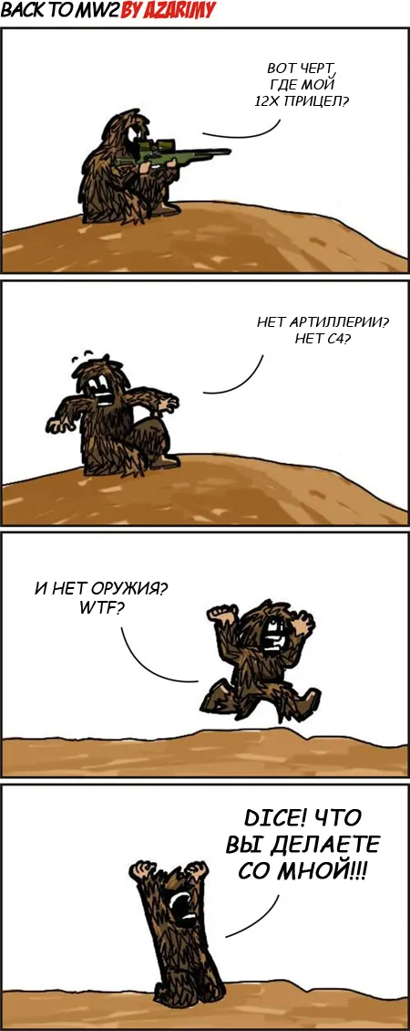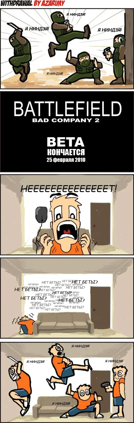 Решил в очередной раз заняться переводом комиксов от Azarimy, посвященных бета-тесту Battlefield: Bad Company 2. Приятного просмотра: