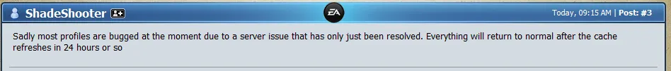 К сожалению большое количество профайлов на данный момент забагены из-за сбоя серверов. Все вернется к нормальному состоянию через 24 часа после восстановления кэша.