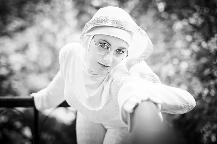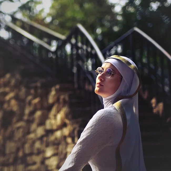 Российская косплеерша Ониксия Софиникум предстала в образе Байонетты, одетой в костюм монахини.