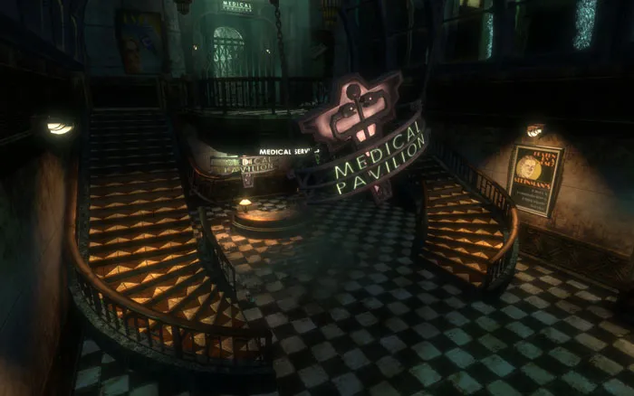 Исследуйте медицинский павильон подводного города в уникальной экскурсии, где вас ждет эксцентричный доктор Штайнман. Узнайте о его творческом подходе к хирургии, осмотрите зловещие медицинские кабинеты и познакомьтесь с жуткими экспериментами. Погрузитесь в мрачную атмосферу с захватывающей историей!