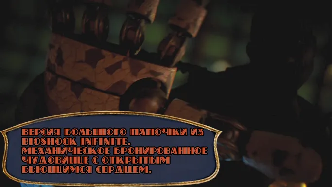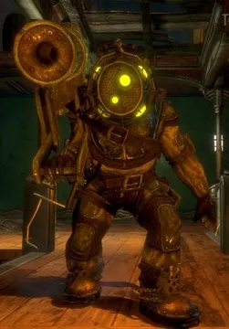 Большой папочка из оригинальной игры - генетически и ментально модифицированный человек (обычно бывший заключённый) в большом водолазном костюме, нападающий на всех, кто угрожает охраняемой Сестричке.