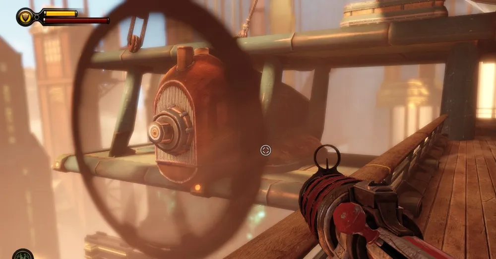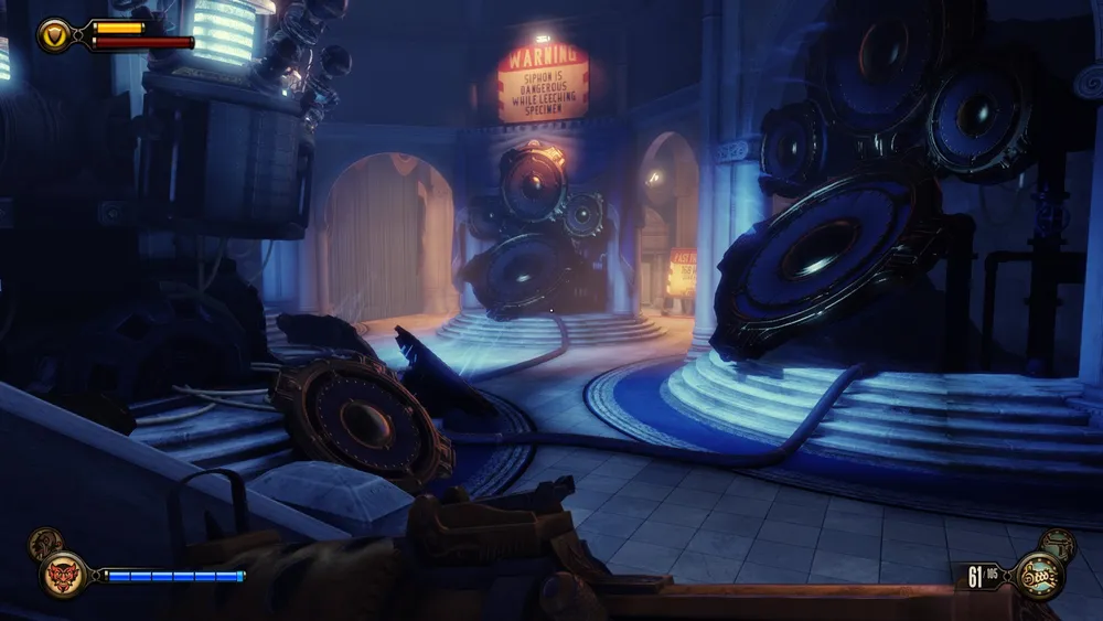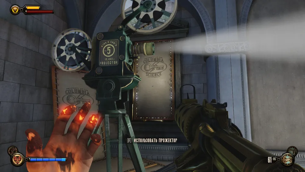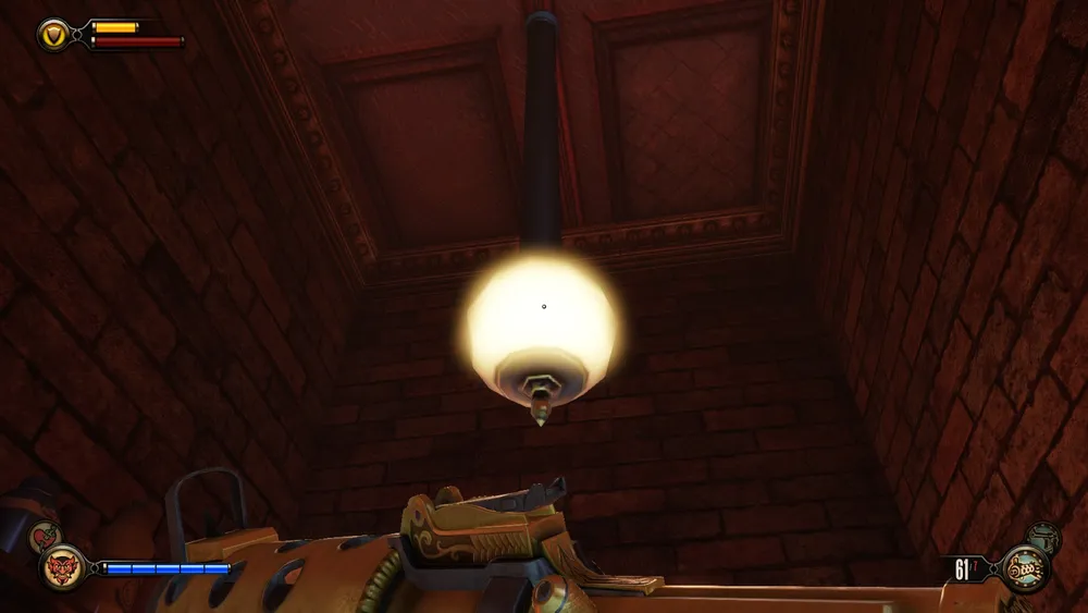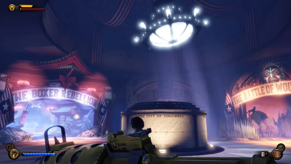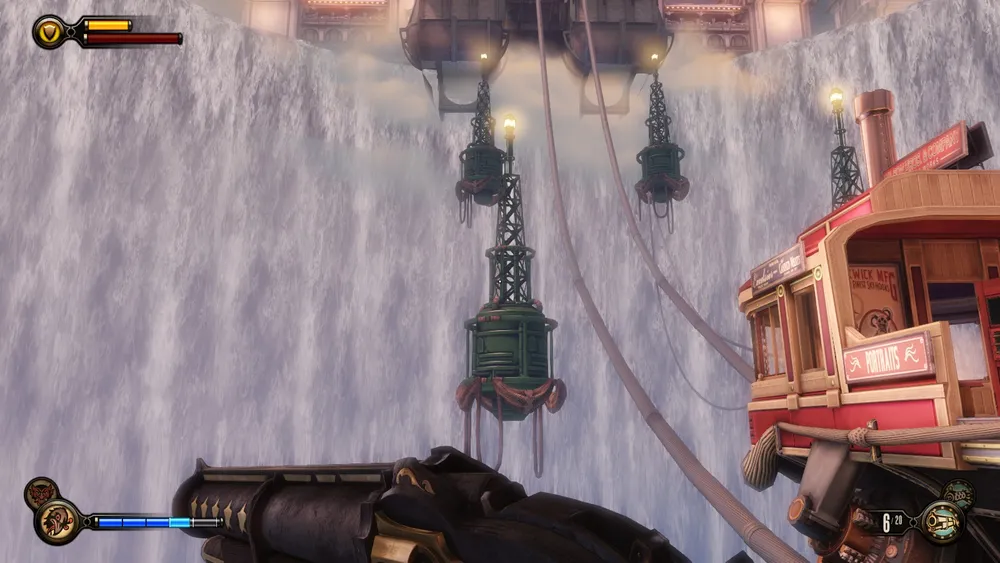 В башне Монумента и потом, в доме Комстока, также можно увидеть странные источники электрической энергии – колбы с кристаллами Шок Жокея передают свою высвобожденную энергию на электростатические шары (хотя зачем?) и какие-то трансформаторы. Использование ее в духе того времени – с разрядами в воздухе и угрожающим гудением.