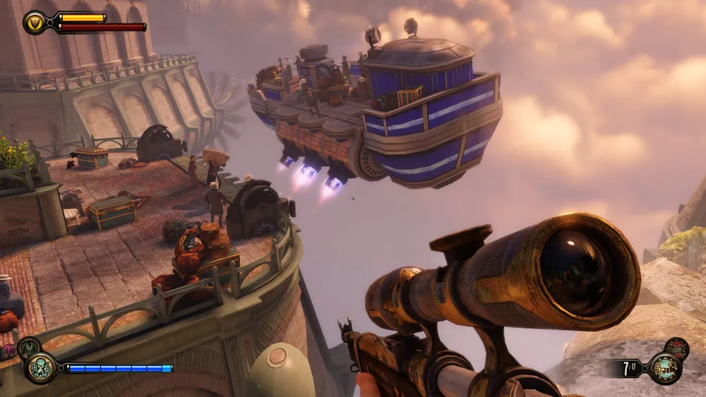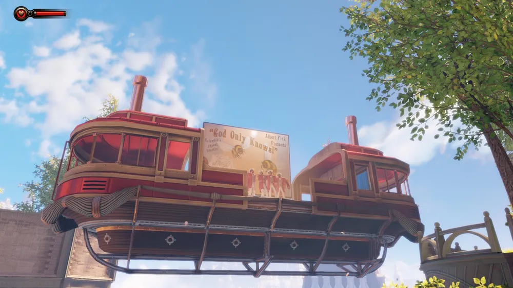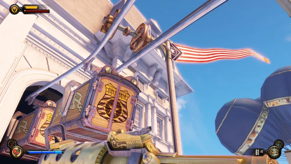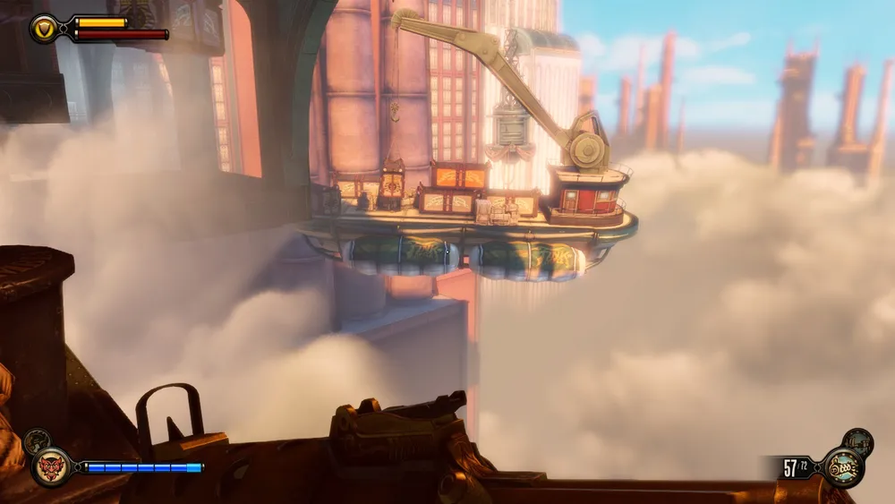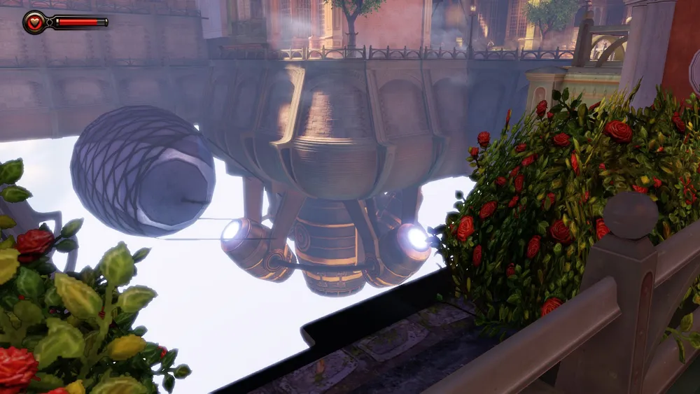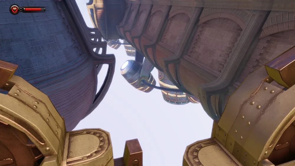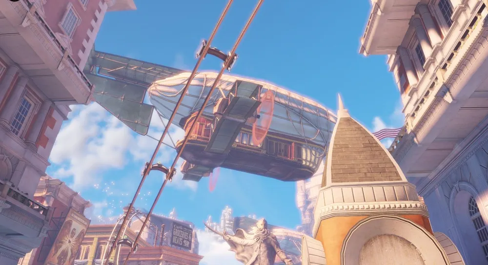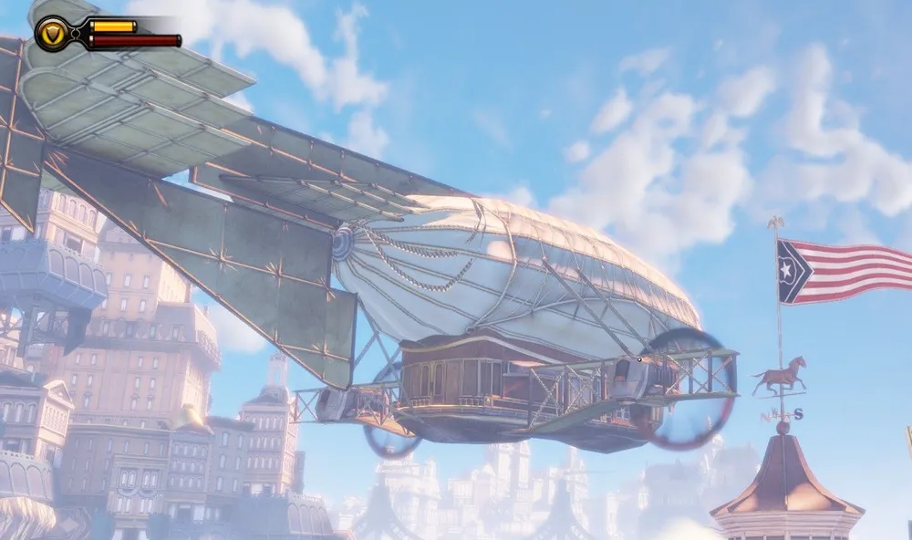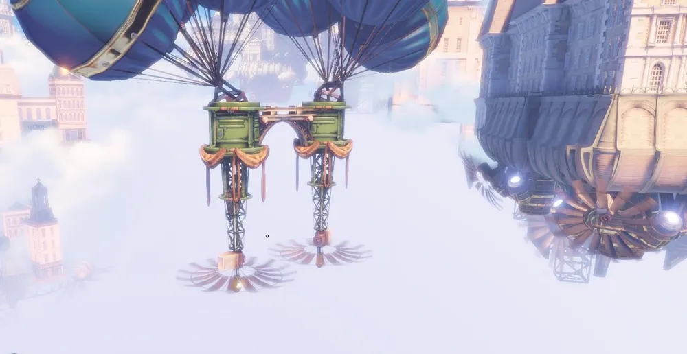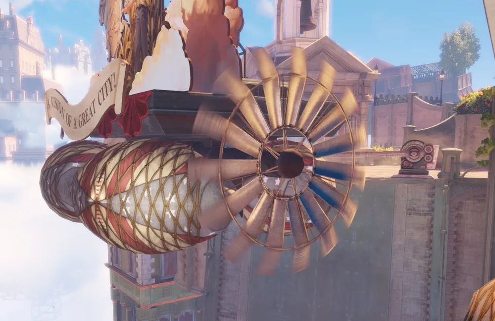 Обычно у дирижаблей того времени винты располагались по продольной оси, и, в основном в задней части, тем более у дирижаблей в игре имеются даже что-то вроде крыльев бипланной схемы. Как у простых прогулочных дирижаблей, один из которых видит Букер, когда ему пересекает путь агитационная вереница, в начале игры.