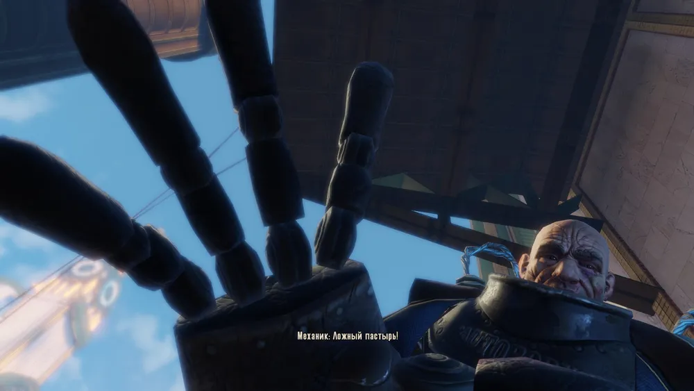 Я вспомнил, что в доме Комстока, когда мы освобождаем Элизабет, то вытаскиваем из ее спины щуп поводка. Биотехнология!!! Еще какая, и в самом ее жутком виде. Нео отдыхает со своими шлангами-мозгоправами.