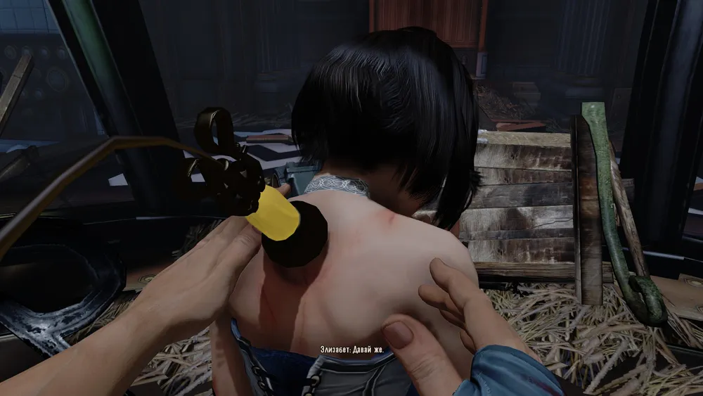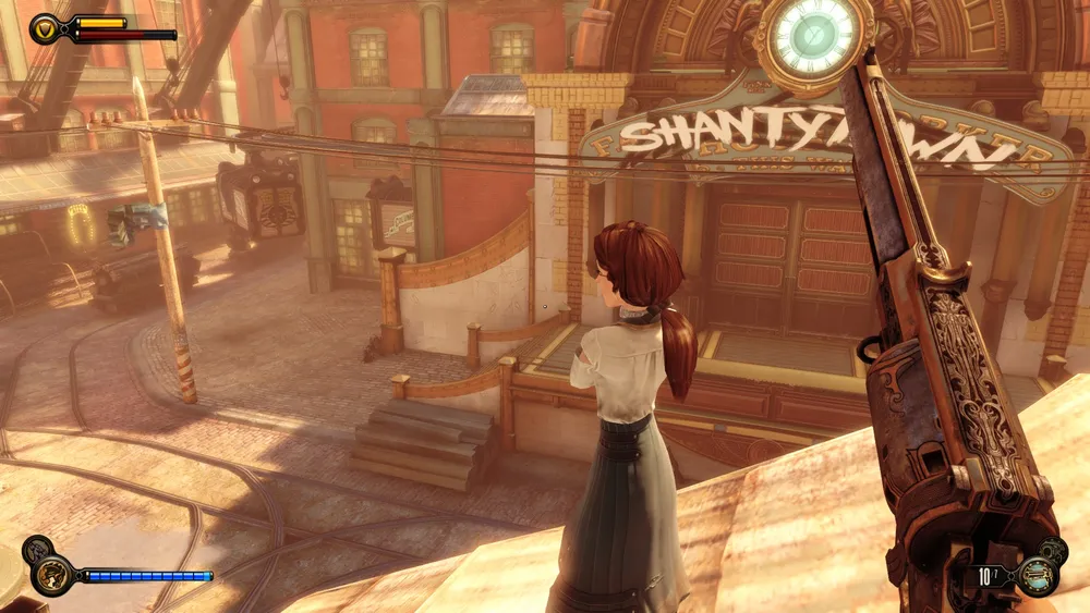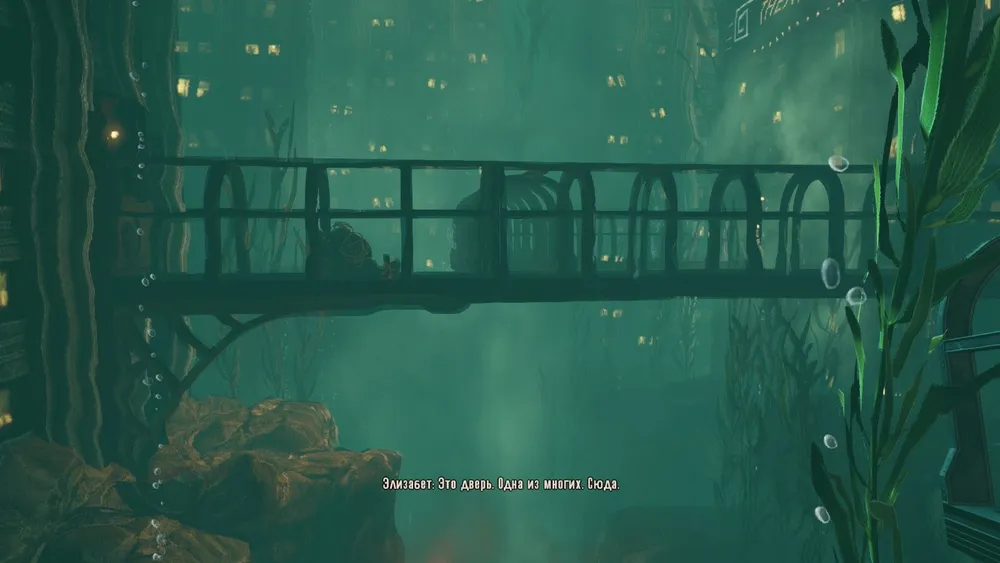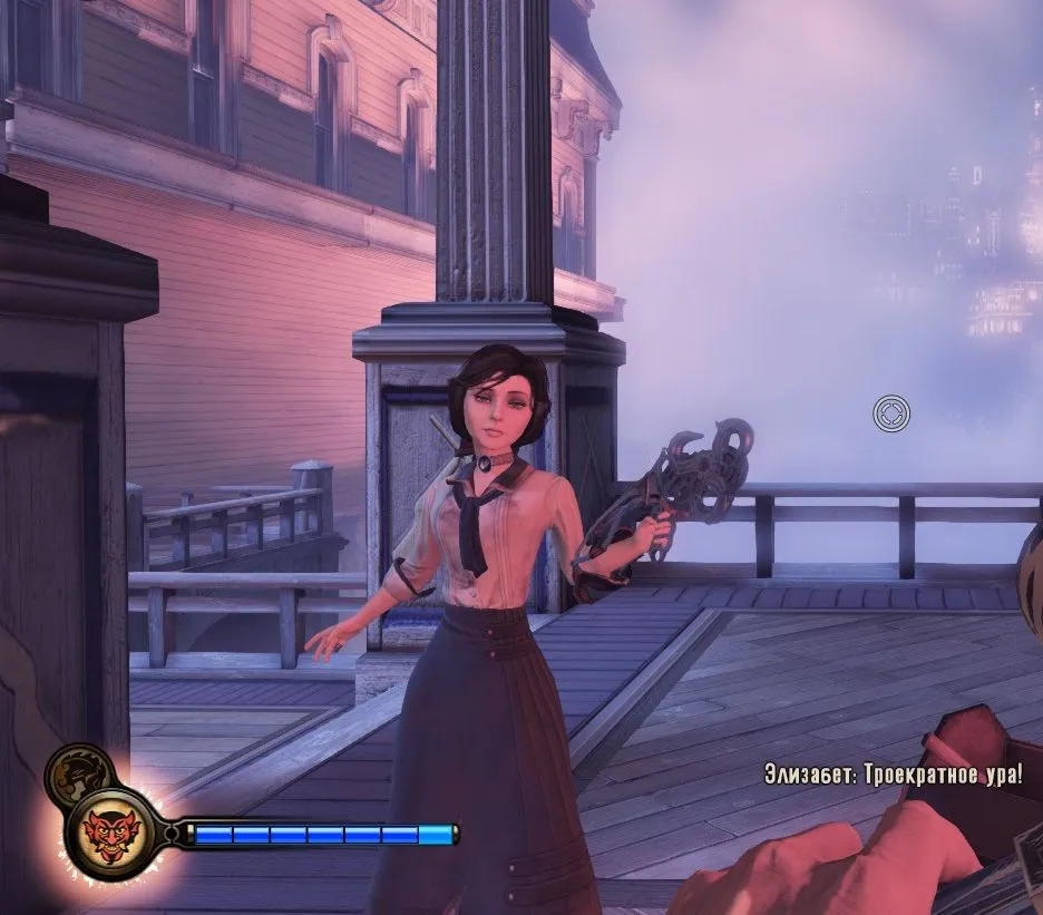 Здесь надо вспомнить, что у Элизабет есть свой небесный крюк. Да! Правда. Откуда она его взяла и куда прячет? Игровые реалии…