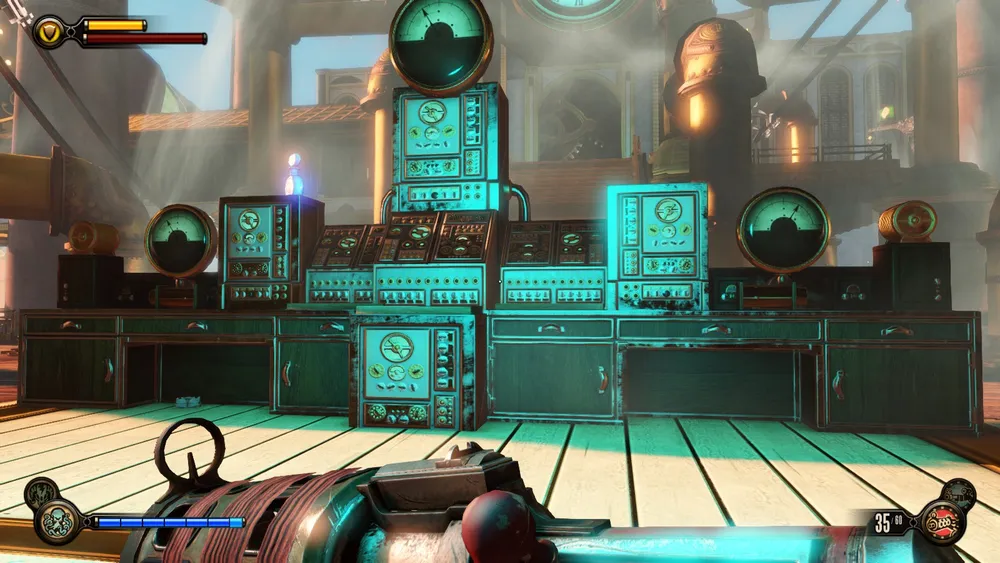 В игре постоянно встречаются органы управления в виде каких-то шкал, рычажков и манометров. Что они регулируют непонятно. Похоже, что используется не только электроэнергия от Шок Жокея, но и энергия пара.