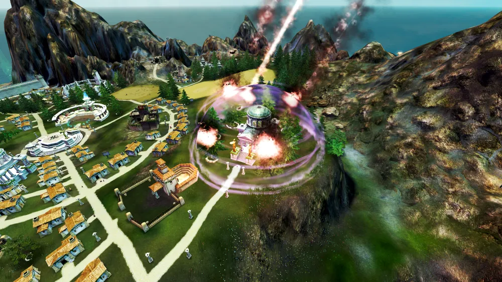6. Захват острова. Выполнив все задания, настало пора одолеть врага. На данном острове легче всего победить отстроив впечатляющий город. В определенный момент игры, глава норманнов отправит один отряд патрулировать вашу границу у побережья, а позднее три отряда к главным воротам. Так как ваше поселение огорожено крепостной стеной, вражеские отряды не в состоянии преодолеть её, от слова совсем. Единственный их шанс — это когда вы сами откроете ворота, чтобы впустить иммигрантов. Но и тут, их легко может перехватить ваш титан. Если вы уничтожите эти отряды, норманны быстро сформируют новые и отправят их на замену. Это хорошая возможность выполнить цели, связанные с военными действиями (см. выше, пункт 1). Построив достаточно домов и 4-5 храмов, вы одержите победу. К слову, вражеский титан не пропадет и станет атаковать стены своего же города, видимо они становятся враждебны для него.