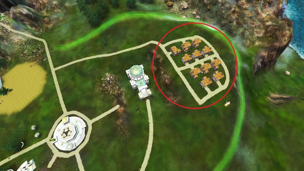 Одна из целей, построить 10 зданий в удивительном месте. Такое место расположено на возвышенности к северо-западу от городского центра. Постройте небольшой район из десяти и более жилых домов (лучше более, так как не все здания могут засчитаться) на этой возвышенности, после чего достигните цель и получите дань.