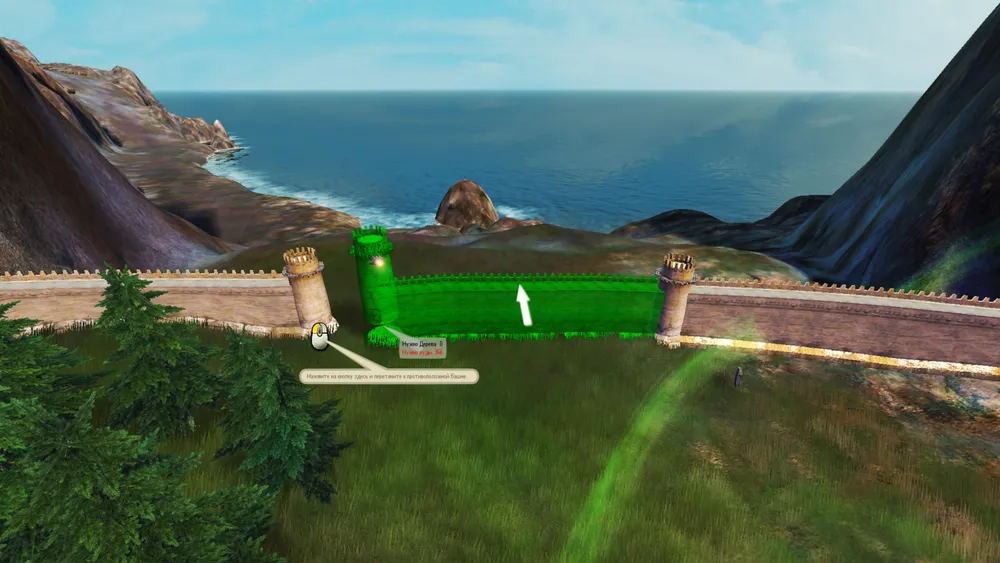 2.1 Возведение крепостных стен. Рядом с недостроенной стеной будет бронзовый свиток. Он начинает небольшое обучающее задание по постройке крепостных стен. Кликните на крайнюю башню и перетащите стену к другой, чтобы сомкнуть их. Когда стена будет построена квест завершится, дань за данный квест не предусмотрена.