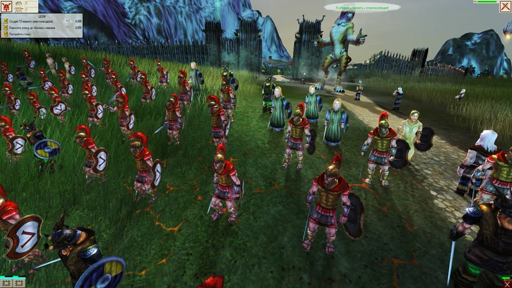 В момент приближения ваших войск норманны закроют ворота, а на стены взберутся лучники. Кроме лучников подходы к стене может охранять наружный патруль. Уничтожить лучников и патруль вы можете при помощи бессмертного отшельника и огненного шара (см. выше, пункт 3). Ворота проломить может ваш титан, либо вы сами, при помощи все того же бессмертного. Для этого просто отпустите его в притык к воротам и скиньте сверху большой камень. Открыв путь в город, направьте вашего титана нейтрализовать Волка, но будьте осторожны, не начинайте бой с ним рядом с другими участками стен, лучники на стенах будут помогать своему титану. При прокачанной роли солдата до Т2 (см. выше, магазин п. 2), одолеть Волка вашему титану будет вполне по силам без значительной потери здоровья.