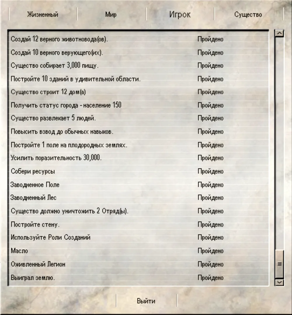 2.2 Роли титана. Второй бронзовый свиток будет доступен, когда у вас будут построен склад и создано пахотное поле. Он появится над «загоном» для вашего существа. В данном квесте вам кратко расскажут про роли титана. Их мы рассматривали ранее (см. прохождение, часть 1, п. 3.6), потому останавливаться тут не будем. За выполнение задания получите 1 000 дани.