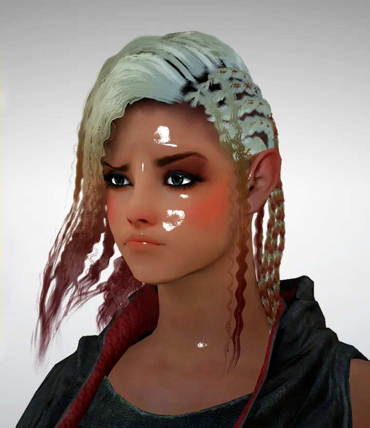 Шаблоны, цвет кожи, все как положено. С цветом правда особенно не поизвращаешься, как в Saints Row, Black Desert все-таки более реалистична. Но и того, что есть хватает - мертвенно бледная кожа темного эльфа, цвет розовой попки младенца, горячий испанский персик, ну и политкорректные оттенки - шоколадный и желтушный. Отличной находкой стала настройка масляности кожи, выглядит весьма сексуально.