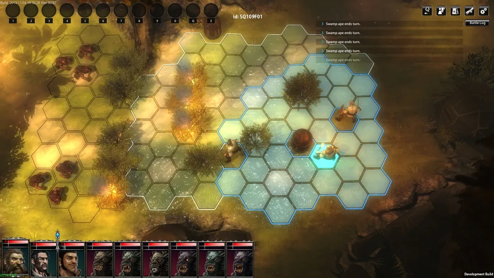 Поле боя поделено на гексы. В начале каждого хода у игрока есть следующие возможности: