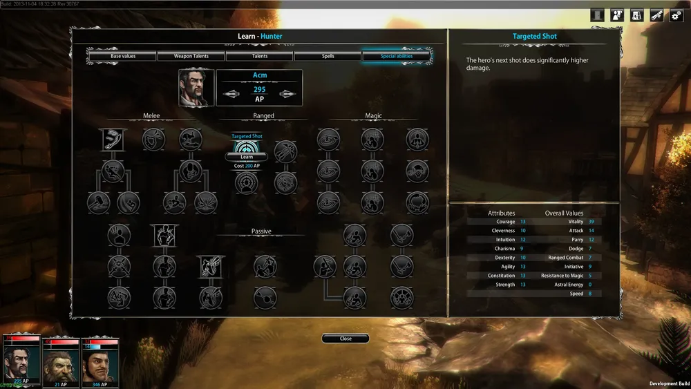 Таланты. У каждого таланта 4 уровня, уровни получаются на 1, 8, 13 и 18 купленном скилле. Таланты могут применяться в бою, могут действовать постоянно, их объединяет то, что они не рассчитаны на нанесение какого-либо эффекта на противника, за одним исключением - способностью устанавливать ловушки.