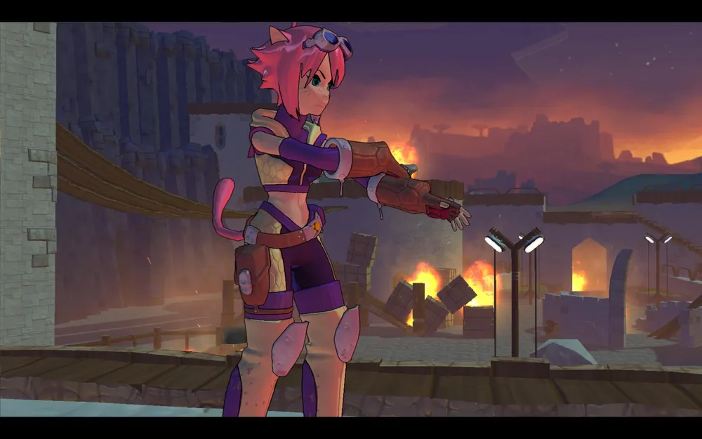 В поиске приключений наша героиня отправляется на Холлоу Виш, где их без труда и находит. Сперва смазливая конкурентка ворует у Бэллард важную штуковину, а затем все как-то закрутилось, завертелось — и вот уже котодевочка бегает, прыгает, ползает, карабкается и вовсю дерется.