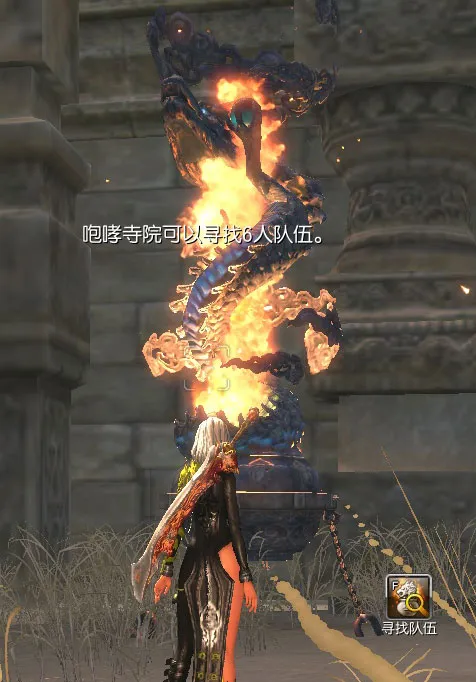 Найти группу в игре достаточно просто. Рядом со всеми мировыми боссами или инстансами есть такие горящие драконо-видные столбы. Кликая на него, вы автоматически становитесь в поиск группы и будете объяединяться автоматически со всеми, кто тоже кликнет на этот столб.