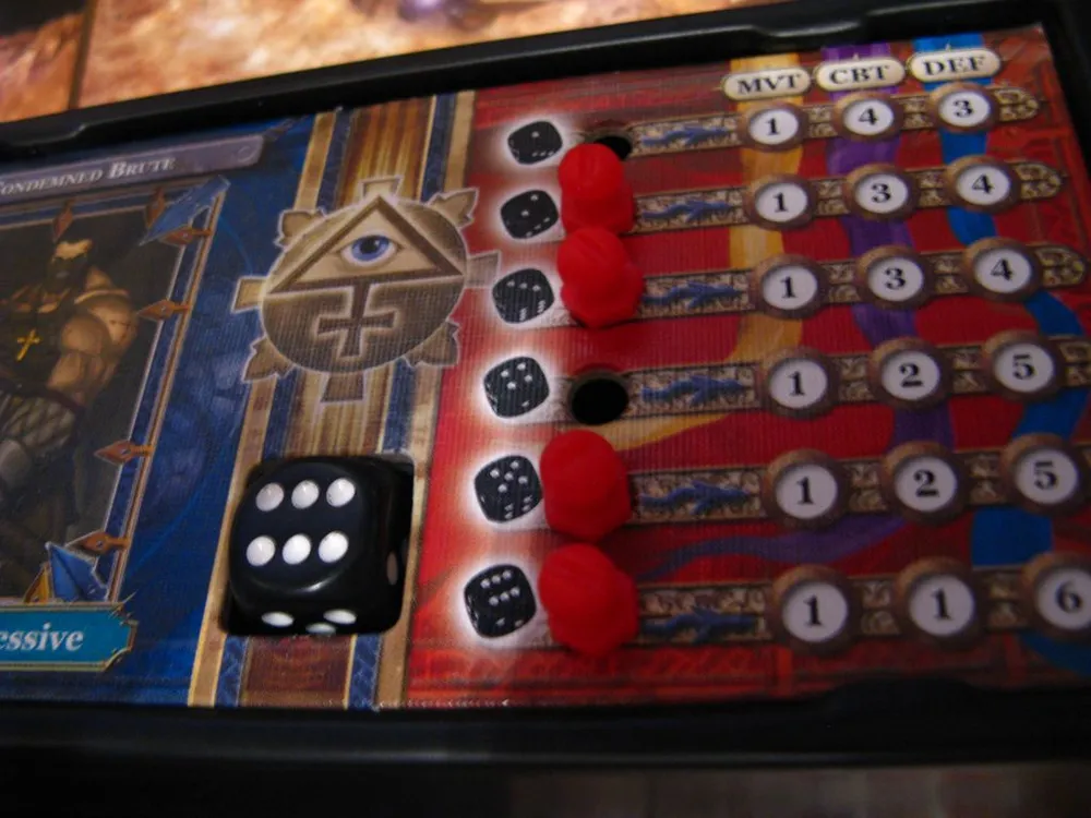 Бой так же происходит на кубиках, хотя и при помощи некоторых карт и способностей на исход все же можно влиять. Карты применяются в соответствии с указанными на них условиями и временем применения. Партия у начинающих игроков будет длиться 1-1.5 часа (хотя это зависит от сценария), у более опытных - 30-40 минут.
