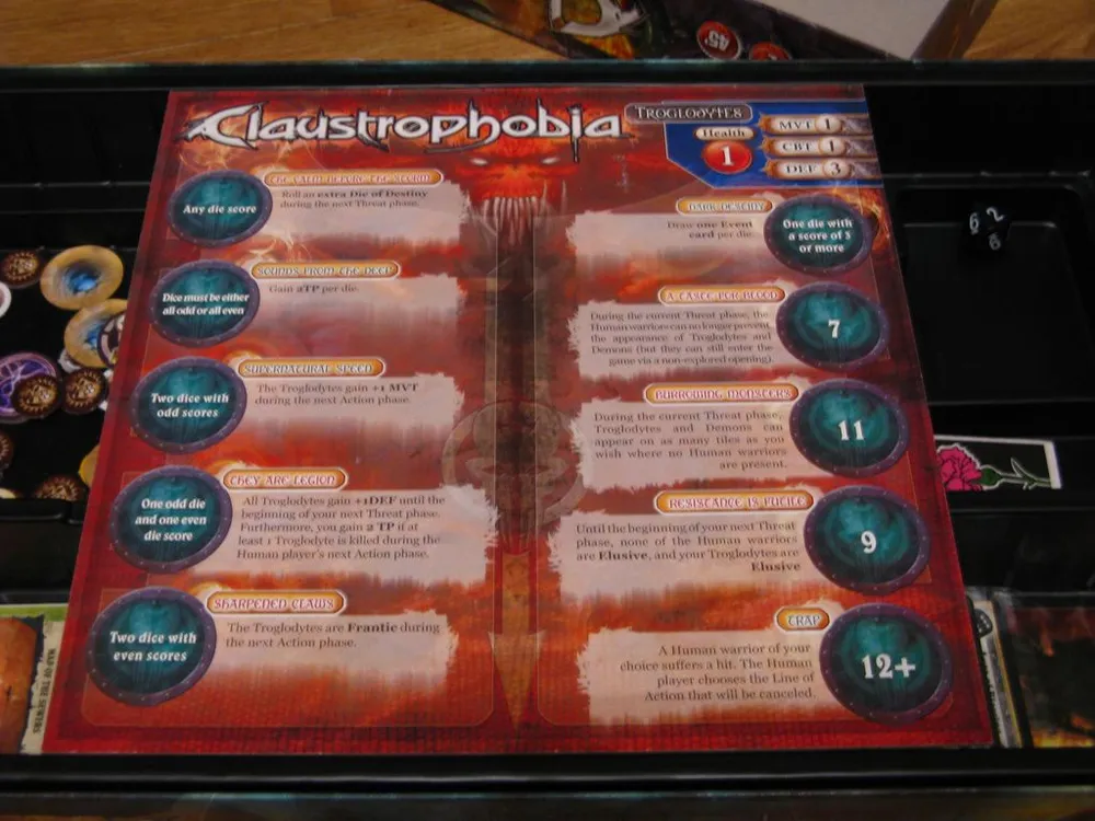 Это список "баффов" и прочих полезностей для троглодитов и деомна. Доска сделана из того же материала, что и тайлы и выглядит качественно.